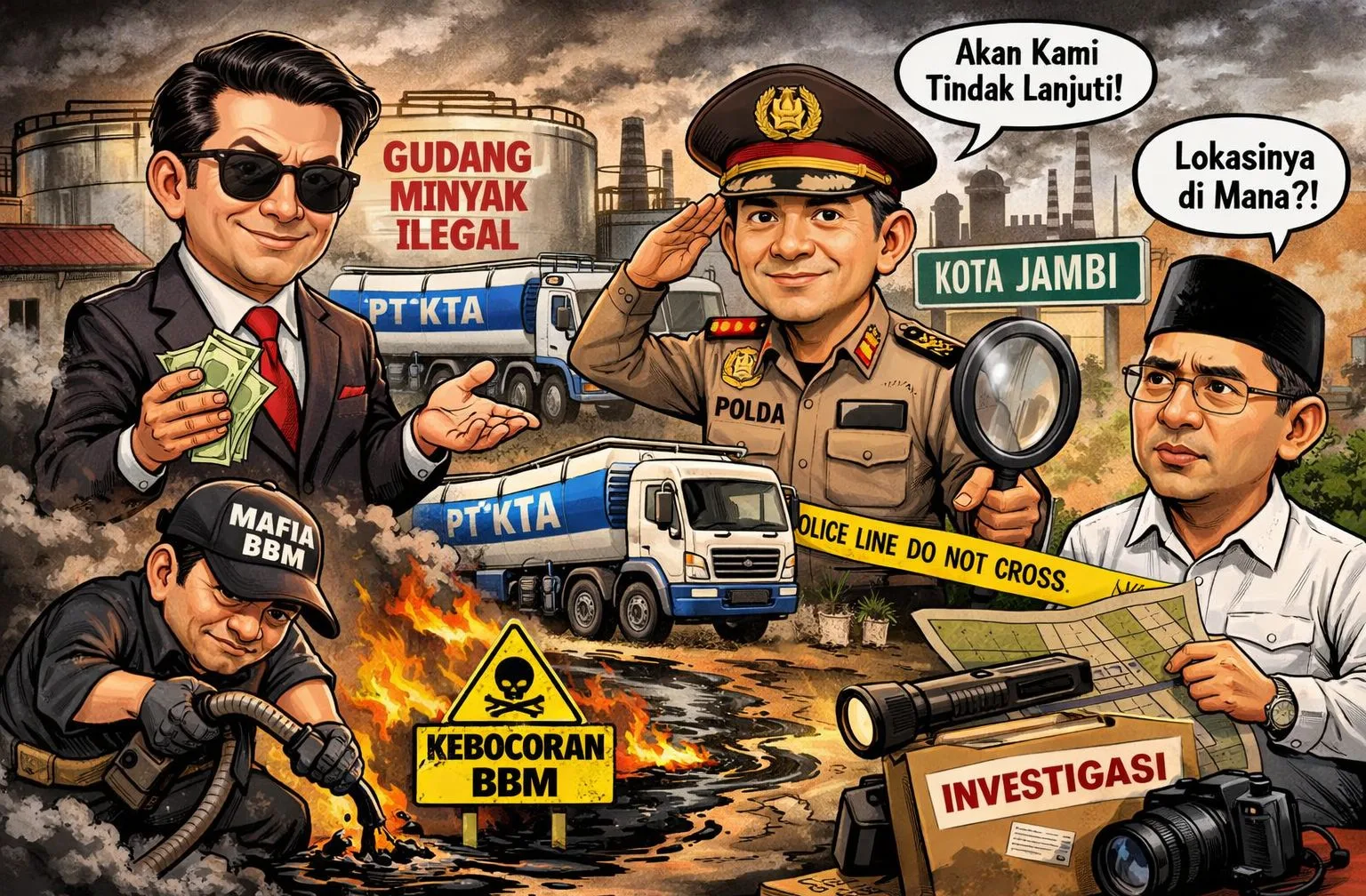 Jambi — Dugaan praktik mafia bahan bakar minyak (BBM) ilegal di Kota Jambi kian menjadi perhatian publik. Insiden kebocoran BBM di kawasan Paal Merah pada Senin (15/12/2025) tidak hanya memicu kepanikan warga, tetapi juga memantik gelombang reaksi keras masyarakat, khususnya di media sosial.