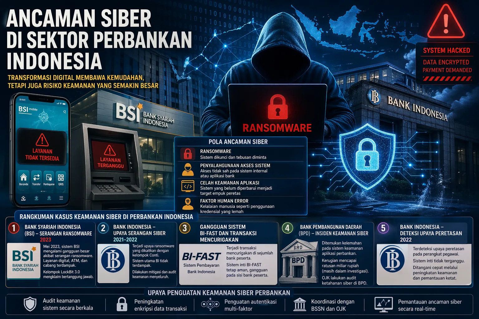 Berikut rangkuman lengkap kasus keamanan siber yang pernah terjadi di sektor perbankan Indonesia berdasarkan laporan dan informasi resmi.